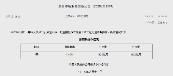 8月11日金融一线音尘,中国央行当天开展1120亿元7天期逆回购操作,操作利率为1.40%。因当天有5448亿元7天期逆回购到期,当日罢了净回笼4328亿元。