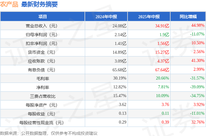 据证券之星公开数据整理,近期农居品(000061)发布2025年中报。抑遏本论说期末,公司营业总收入34.91亿元,同比上升44.98%,归母净利润1.9亿元,同比下落11.07%。按单季度数据看,第二季度营业总收入19.5亿元,同比上升43.59%,第二季度归母净利润1.16亿元,同比下落11.86%。本论说期农居品应收账款上升,应收账款同比增幅达41.3%。